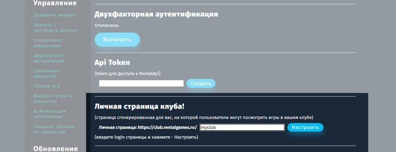 Для клиентов RentalGames, мы добавили возможность, завести свою персональную страницу клуба.